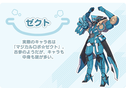 Tomohiro Satō as Zekuto, the mysterious player whose character's full name is "Magical Robo☆Zekuto"
