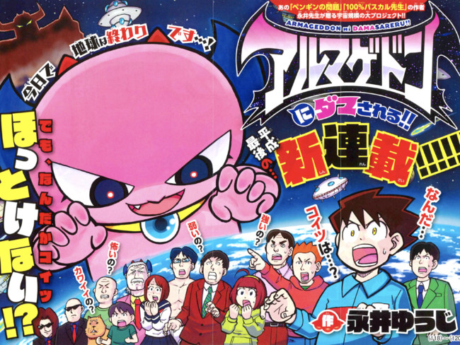Yūji Nagai (A Penguin's Troubles, 100% Pascal-sensei) launched the Armageddon ni Damasareru!! (Tricked by Armageddon!!) manga in the May issue of Shogakukan's Monthly Coro Coro Comic magazine on Monday.