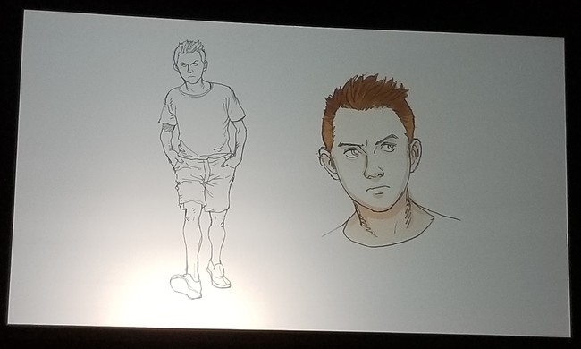 Otomo presented a concept art of the space colony and a rough character design of the main character at at the panel.