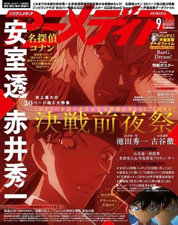 The September issue of Gakken Plus' Animedia magazine is getting an additional printing before its debut for the first time since the magazine launched in 1981. The issue shipped on Friday, and its front cover features the Detective Conan anime characters Tohru Amuro and Shuichi Akai. A high volume of pre-orders and orders prompted the issue's additional printing.