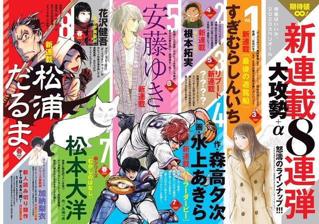 The second 2020 issue of Shogakukan's Big Comic Superior magazine revealed on Friday that the magazine will launch eight new manga in the near future, including new manga by Taiyo Matsumoto (Tekkonkinkreet) and Daruma Matsuura (Kasane).