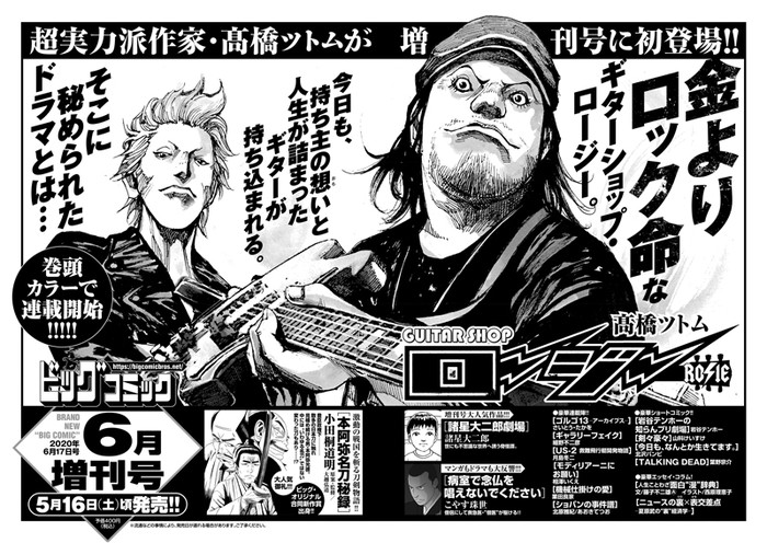 The March issue of Shogakukan's Big Comic Zōkan magazine revealed on Monday that Tsutomu Takahashi will launch a new manga titled Guitar Shop Rosie in the magazine's June issue on May 16. The manga's first chapter will have an opening color page.