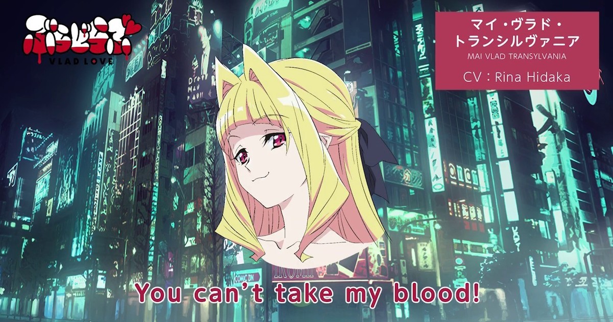 The official website for Ichigo Animation and Mamoru Oshii's new anime series Vladlove revealed on Tuesday that Rina Hidaka will voice the character Mai Vlad Transylvania. It posted a subtitled video previewing Transylvania's voice, and also posted another video last week inviting viewers to guess the voice actress for the character Chihiro Chimatsuri.