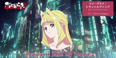 Rina Hidaka as Mai Vlad Transylvania: A beautiful vampire girl lost in an unfamiliar land. Mai is descended from the Transylvania clan, a prestigious vampire family. She is shy and faint-hearted, and can't bite and suck people's blood even though she is a vampire. She was hungry and had no one to turn to, but met Mitsugu, who decided to help her and take her home.