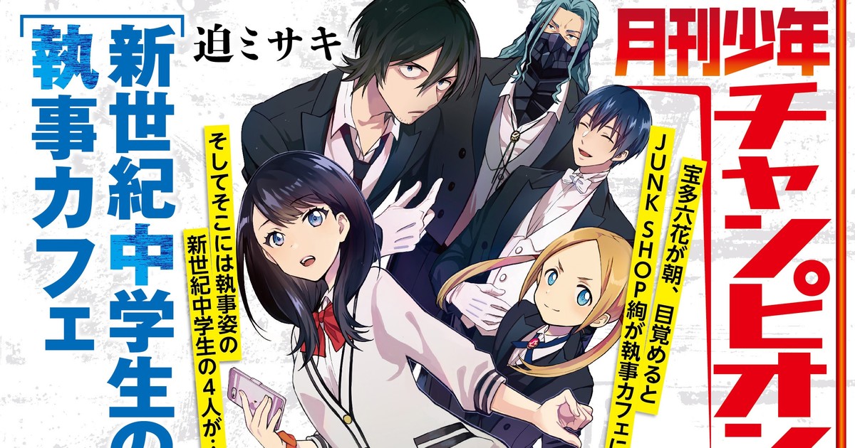 The official Twitter account for Akita Shoten's Monthly Shōnen Champion magazine revealed the title and launch date for Misaki Sako's manga spinoff of Trigger's SSSS.Gridman anime on Monday. The manga, titled Shinseiki Chūgakusei no Shitsuji Cafe (The Neon Genesis Junior High School Students' Butler Cafe), will launch in the June issue of Monthly Shōnen Champion on May 2.