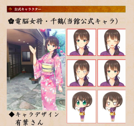"Dennō Okami Chizuru" is the mascot of the Ryokan Tsuruya Intaku inn, which is located in the Yunohira hot spring district in Yufu. The character is also a VTuber, who disseminates tourist information about the Yunohira hot spring district and Ryokan Tsuruya Intaku. The character became popular, and a local voice actress was attached to the character.