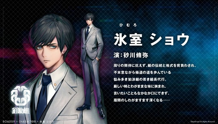 Shūya Sunagawa as Shō Himuro, the steward leader of the Hakurō-gumi, who was forced to take his unwanted mantle to protect the traditions and standing of the group. He is pulled from many directions, sometimes by his strict older sister, and sometimes by his carefree younger sister, and his brow is increasingly furrowed by the day.