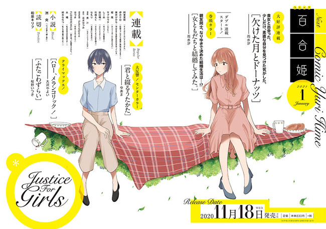 The December issue of Ichijinsha's Comic Yuri Hime magazine revealed on Saturday that Shio Usui will launch a new manga in the magazine titled Onna Tomodachi to Kekkon Shitemita. (Trying Out Marriage to My Female Friend), starting in the January 2021 issue on November 18.