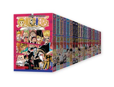 Description: Set contains volumes 71–90, which make up the Dressrosa, Zou, Whole Cake Island and Reverie arcs. Plus exclusive bonus gifts!