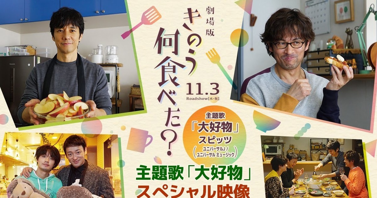 TOHO began streaming a special video for the live-action film adaptation of Fumi Yoshinaga's What Did You Eat Yesterday? (Kinō Nani Tabeta?) manga on Monday. The video features SPITZ's theme song "Daikо̄butsu" (Favorite Food).