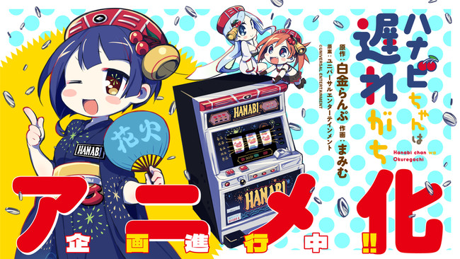 Universal Entertainment, a maker of pachi-slo (pachinko parlor slot machine) and pachinko games, conceived the "pachi-slo anthropomorphization comedy" concept. The manga imagines if Universal Entertainment's Hanabi (Fireworks), Versus, and Thunder V pachi-slo machines were girls working in a pachinko hall.