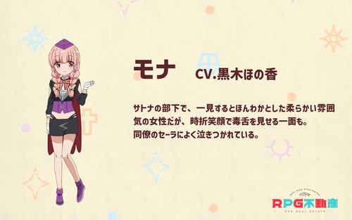 Sources: RPG Real Estate anime's website, Comic Natalie