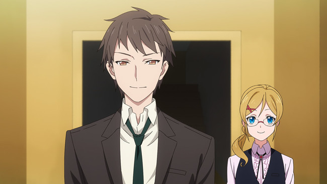 Junji Majima plays Shinji Ibuki (pictured below on left), producer of the group May-Bee, and Ayaka Suwa plays Sanae (pictured below on right), manager of May-Bee.