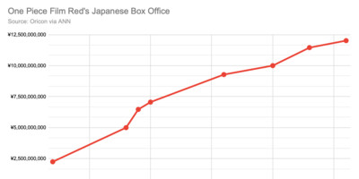 As of Wednesday, the film earned more than Top Gun: Maverick's last confirmed Japanese box office total of 11.81 billion yen (about US$84.3 million) as of Sunday, August 28. However, since Top Gun: Maverick is still in theaters, the films' distributors have not confirmed One Piece Film Red has surpassed Top Gun: Maverick's latest box office total. (The two films are the highest grossing films that opened in Japan this year.)