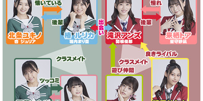 The musical will feature an all-new story, setting, and characters, and will center on students from two legendary schools in Hyogo and Osaka. Takizakura Girls Academy (right in image below) in Osaka has a school idol club, with select members from its performing arts track, that it has successfully marketed into a brand. Tsubakisakuhana Girls High Schoo (left)l in Hyogo boasts a stellar reputation in college acceptance rates. The daughters of both schools' respective chairpersons are rivals, and lead their respective schools' school idol club.