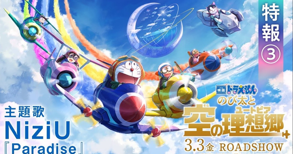 The official website for Eiga Doraemon: Nobita to Sora no Utopia (Doraemon the Movie 2023: Nobita's Sky Utopia in English), the 42nd film in the Doraemon franchise, revealed the film's third teaser video on Sunday. The video previews the theme song "Paradise" by girl group NiziU.