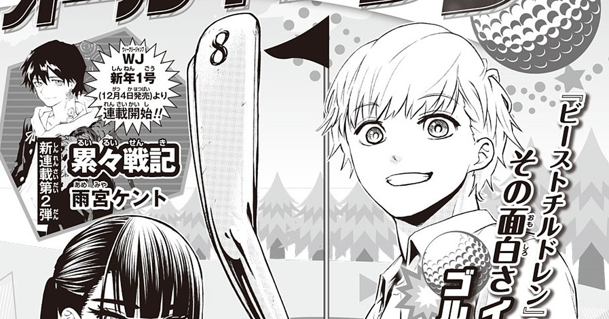 This year's 51st issue of Shueisha's Weekly Shonen Jump magazine announced on Monday that manga author Kento Terasaka (Beast Children) will launch a new manga titled Green Green Greens in the magazine's next issue on November 27. Author Kento Amemiya's Ruirui Senki manga (image below, top left) will also start serialization in the magazine's first 2024 issue, which will release on December 4.