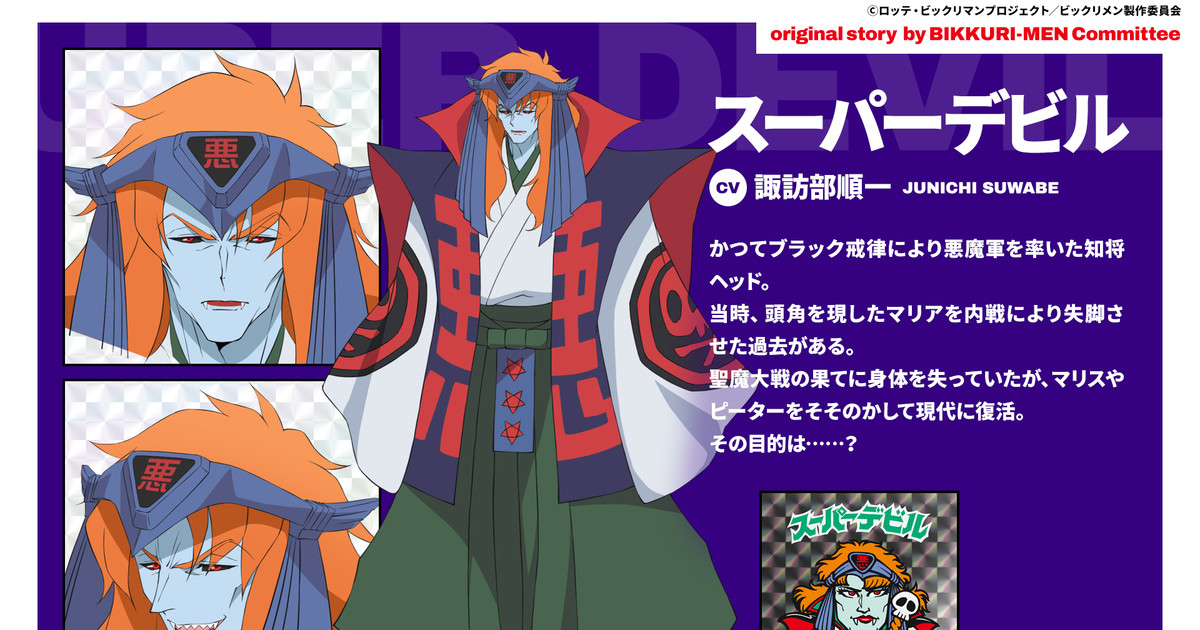 The official website for Bikkuri-Men, Japan-based confectionery maker Lotte's new anime based on its Bikkuri-Man line of wafer snacks, revealed on Thursday that Junichi Suwabe plays Super Devil, who appeared in the 10th episode on Thursday.