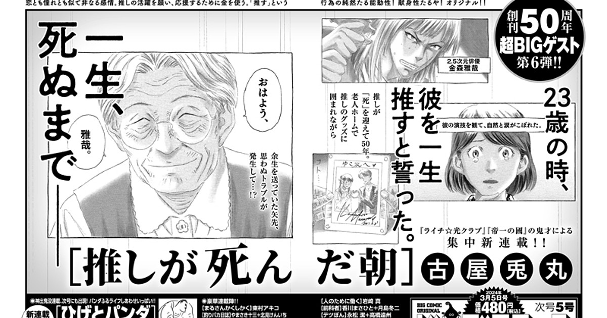 This year's fourth issue of Shogakukan's Big Comic Original magazine announced on Monday that Usamaru Furuya will launch a new manga mini-series titled Oshi ga Shinda Asa (The Morning my Favorite Died) in the magazine's next issue on February 20.