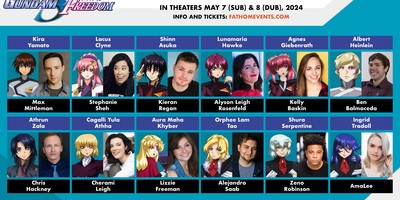 Bandai Namco Filmworks revealed the English dub cast on Friday for the Mobile Suit Gundam Seed FREEDOM film. The company and Fathom Events will screen the film in the U.S. and Canada on May 7-8. The film will screen in Japanese with English subtitles on May 7 in both countries, and it will screen with an English dub on May 8 in the U.S. Tickets went on sale on April 5.