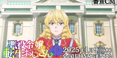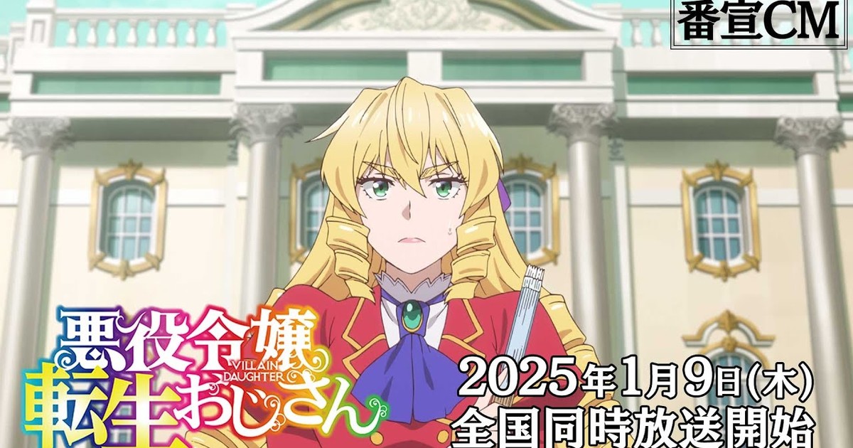 The official website for From Bureaucrat to Villainess: Dad's Been Reincarnated!, the television anime adaptation of Michiro Ueyama's Akuyaku Reijō Tensei Oji-san (The Middle-Aged Man that Reincarnated as a Villainess) manga, revealed a commercial, new visual, and more cast on Thursday. The website also revealed that the show will have its broadcast premiere on MBS and TBS and its 28 affiliate channels in the Super Animeism TURBO programming block on January 9.