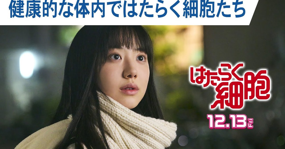 The staff for the live-action film of Akane Shimizu's Cells at Work! (Hataraku Saibō) manga unveiled two new videos for the film on Thursday. The first clip below shows the healthy high schooler Niko, as her red blood cells deliver oxygen, her white blood cells and killer T cells protect her from bacteria and disease, and her body pumps adrenaline, endorphins, and dopamine while she's with her crush. The second video shows her unhealthy father Shigeru when his red blood cells struggle to deliver oxygen in his alcohol-laced smoker's body, and when he struggles to control his bowels.
