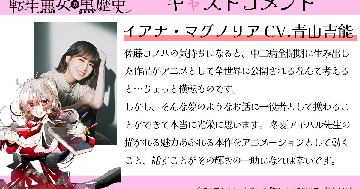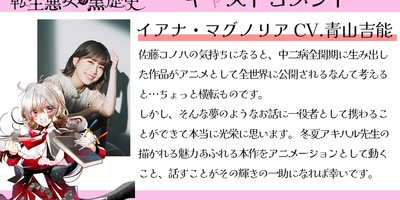 The official X (formerly Twitter) account for the television anime adaptation of Akiharu Tōka's The Dark History of the Reincarnated Villainess (Tensei Akujo no Kuro Rekishi) manga revealed the show's main cast and 2025 debut on Thursday.