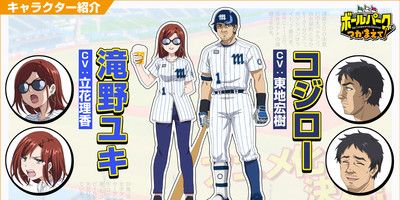 The official X/Twitter account for the television anime adaptation of Tatsurō Suga's The Catcher in the Ballpark! (Ballpark de Tsukamaete!) manga revealed on Thursday that the series has cast Hiroki Tōchi as Kojiro (pictured below on right), a veteran player who has made 200 home runs in his career, and Rika Tachibana as Yuki Takino (pictured below on left), Kojiro's wife and former announcer.