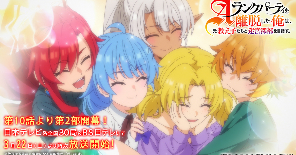 Bandai Namco Filmworks revealed a new promotional video and visual on Sunday for the television anime of Kōsuke Unagi's I Left My A-Rank Party to Help My Former Students Reach the Dungeon Depths! (A-Rank Party o Ridatsu Shita Ore wa, Moto Oshiego-tachi to Meikyū Shinbu o Mezasu.) light novel series. The video previews the show's second part.
