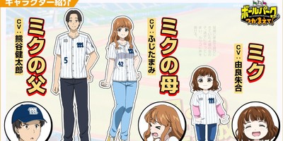 The official X/Twitter account for the television anime of Tatsurō Suga's The Catcher in the Ballpark! (Ballpark de Tsukamaete!) manga revealed on Thursday that the series has cast (pictured below from right to left): Akari Yura as the 4-year-old Miku, Mami Fujita as Miku's mom, and Kentarō Kumagai as Miku's dad.