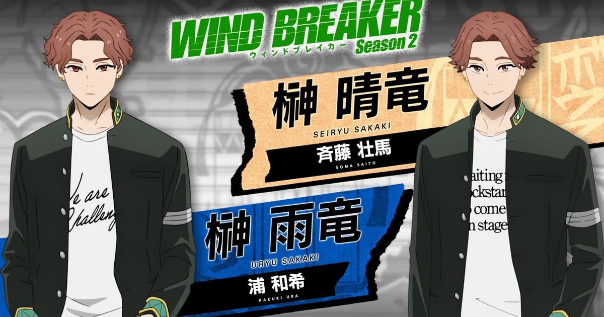A stage event at AnimeJapan 2025 on Saturday revealed two new cast members for the second season of the television anime of Satoru Nii's Wind Breaker manga. Sōma Saitō and Kazuki Ura will voice the twin brothers Seiryu Sakaki and Uryu Sakaki, respectively.