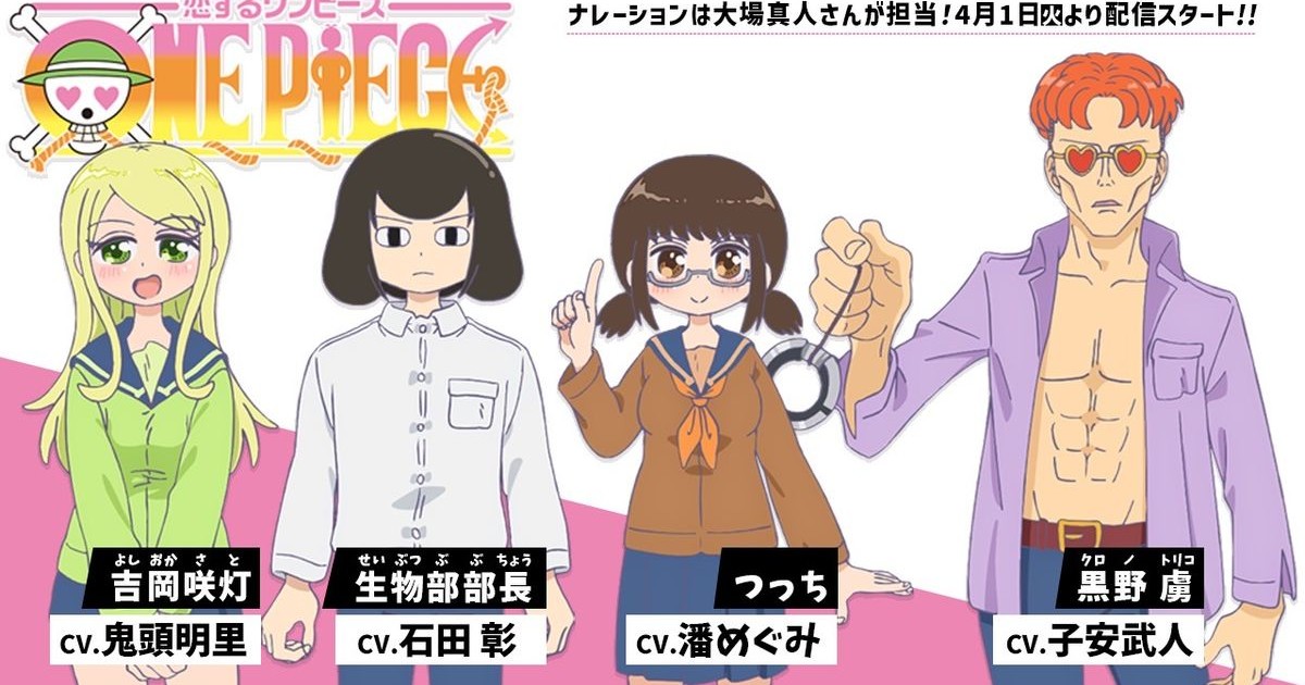 The official website for the One Piece anime revealed on Monday five more cast members for the series of net anime shorts based on Daiki Ihara's Koisuru One Piece spinoff manga: