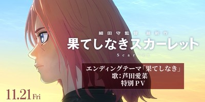 The offiical website for Studio Chizu and director Mamoru Hosoda's new anime film Scarlet (Hateshi naki Scarlet in Japanese, literally "Scarlet Without Limits") began streaming on Friday a new promotional video, and it reveals the theme song "Hateshi naki" (Without Limits) performed by Mana Ashida (voice of Scarlet) with lyrics by Hosoda.
