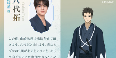 The staff for the television anime of Tsuyoshi Yasuda's Blue Miburo (Ao no Miburo) manga revealed a new cast member for the anime's second season on Sunday. Taku Yashiro will join the cast as Yamazaki Susumu, a man who, instead of taking over their family's business, wanders around trying to make a living with his sword. (Historical names are listed family name first here.)