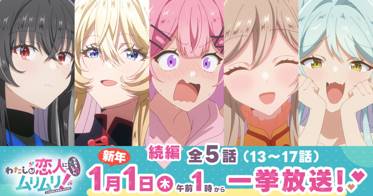 The official website for There's No Freaking Way I'll Be Your Lover! Unless... ~Next Shine~, the sequel to the television anime of Teren Mikami's There's No Freaking Way I'll Be Your Lover! Unless... (Watashi ga Koibito ni Nareru Wake Naijan, Muri Muri! Muri Janakatta!? or WATANARE) yuri romantic comedy novel series, revealed on Thursday the sequel will air on Tokyo MX and BS11 as five episodes (episodes 13-17) on January 1 from 1:00 a.m. to 3:30 a.m. JST. The special will also air on AT-X on January 10, and will stream on d Anime Store, Anime Times, and Lemino on January 1 at 3:30 a.m. JST.