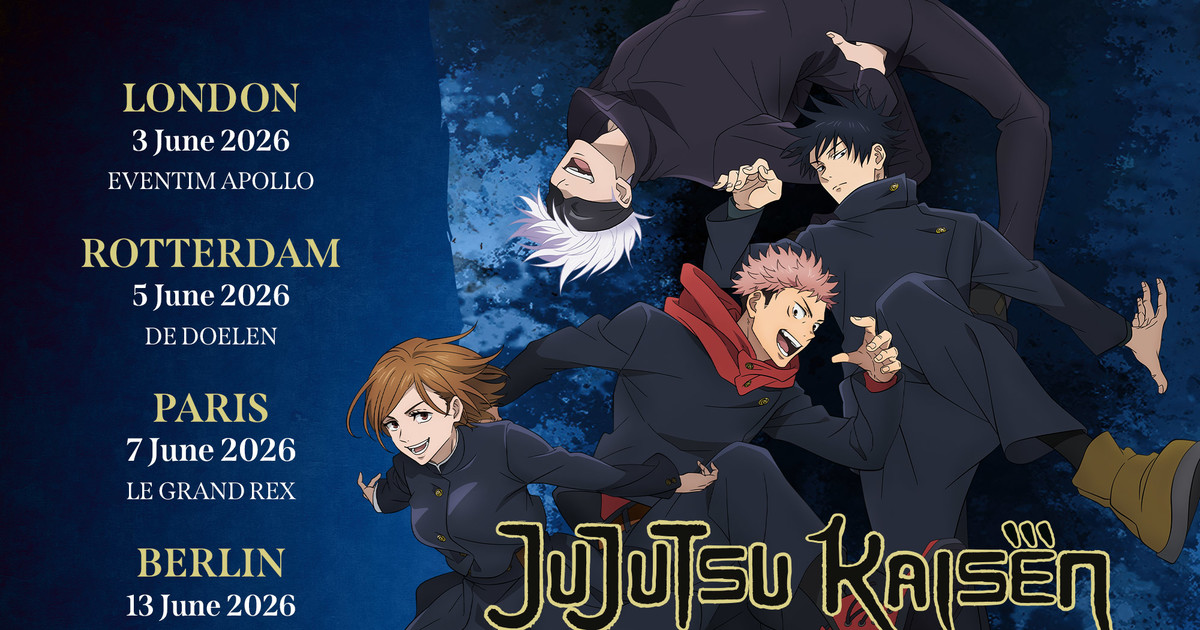 A website, https://www.jujutsukaiseninconcert.com/ has been launched promoting a "Jujutsu Kaisen in Concert" tour in Britain, Europe and Texas, including a concert at London's Eventim Apollo on June 3 at 8 p.m. (doors open at 7 p.m.) Presales will begin at this link on January 28 at 10 a.m.