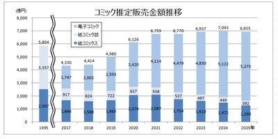 The All Japan Magazine and Book Publisher's and Editor's Association's (AJPEA) Research Institute for Publications revealed last Friday its report on the Japanese manga industry in Japan in 2025. The manga market shrunk 1.7% year-on-year in 2025, with the market value amounting to 692.5 billion yen (about US$4.40 billion), compared to 704.3 billion yen (about US$4.47 billion in current conversion) in 2024, which represented an all-time high for the manga industry. This represents the first time since 2017 that the manga market has shrunk, as it has seen a year-on-year increase since then.