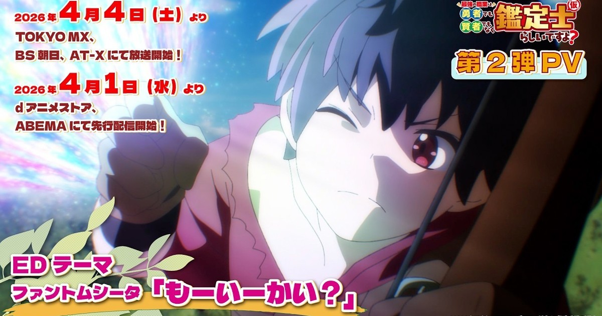 The staff for The Strongest Job is Apparently Not a Hero or a Sage, but an Appraiser (Provisional)!, the television anime of Atekichi's Saikyō no Shokugyō wa Yūsha Demo Kenja Demo Naku Kantei-shi (Kari) Rashii Desu yo? light novel series, revealed the anime's second promotional video, additional cast members, and its April 1 advance streaming debut before it airs on television on April 4. The new video also reveals and previews the ending theme song "Mō Iikai?" by the female idol group Phantom Siita.