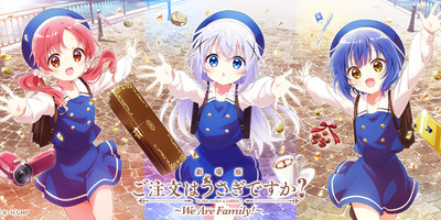 The official website for the new Is the order a rabbit? anime film revealed a new teaser visual and the film's title Gekijōban Gochūmon wa Usagi Desu ka? ~We Are Family!~ (Is the order a rabbit? The Movie: We Are Family!), on Thursday.