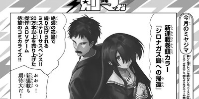 The May issue of Kodansha's Bessatsu Shōnen Magazine announced on Thursday that the planned manga adaptation of Hyogo Onimushi and Tabinomichi's Return to Shironagasu Island game will launch in the magazine's next issue on May 9. The magazine lists Muratan as the new artist for the manga series. The first chapter will have a color opening page.