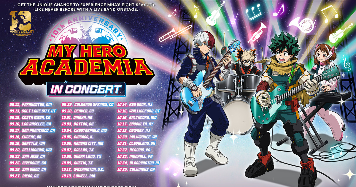 TOHO, GEA Live, and RoadCo Entertainment announced on Tuesday the U.S. tour dates for the "My Hero Academia in Concert" world tour, featuring composer Yūki Hayashi and scenes from the anime. The U.S. leg of the tour begins on September 12 and ends on October 25.