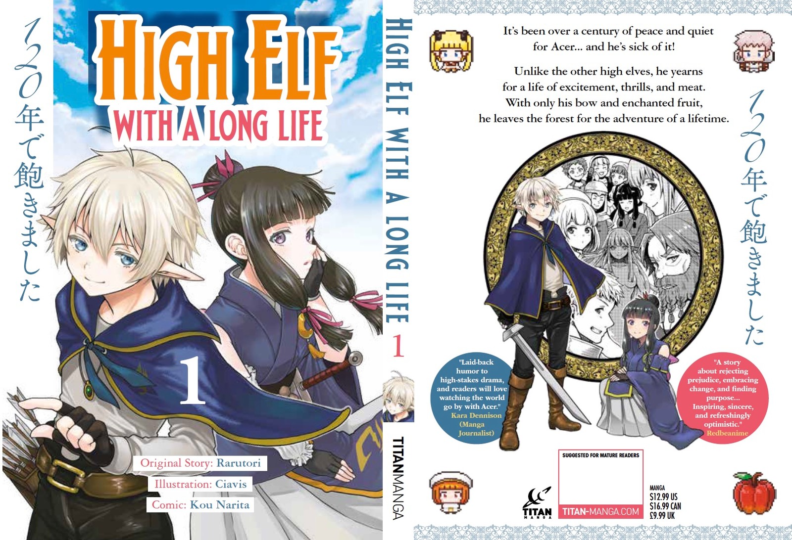 Titan Manga revealed English-language previews of Ryoichiro Kezuka's Record Journey (Onban Kikō) manga and rarutori, Ciavis, and Kō Narita's High Elf with a Long Life (Tensei Shite High Elf ni Narimashita ga, Slow Life wa 120-nen de Akimashita) manga on Tuesday.