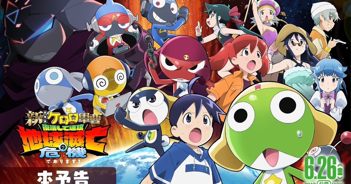 The official website for Shin Gekijōban ☆ Keroro Gunsō Fukkatsu Shite Sokkō Chikyū Metsubō no Kiki de Arimasu! (New Sgt. Frog the Movie: The Earth Is in Mortal Peril as Soon as We Come Back!), the new 20th anniversary anime film project, unveiled the full trailer and visual for the film on Friday. The trailer reveals more cast, and also reveals and previews the film's theme song "Kashippanashi Destiny" by ano.