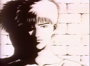 And therein lies the problem: the world that this anime is set in is rather drab, and Eiji just isn't all that interesting as a character. Perhaps I've just seen the whole disaffected-youth-with-a-sense-of-humor thing one too many times, but the end result is a mildly compelling short movie, but one that feels much longer than its running time. There's so much dead weight here -- Eiji's school life and his relationship with the girl he hangs out with, Eiji's strained (and barely developed) relationship with his band... but none of it adds up to very much. The boxing matches might've been an exciting saving grace, but shockingly, there's barely any actual boxing in this OAV. Most of the running time is spent mired in comedically-tinged teen melodrama.