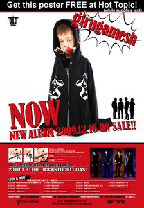 January 6, 2010 – JapanFiles and Hot Topic are giving away free replicas of girugamesh's 2010 tour poster with the purchase of the band's new CD "NOW." The USA release contains the complete 28-page Japanese booklet with lyrics, photos, and liner notes from the band.
