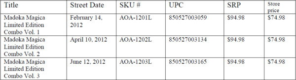Aniplex of America Inc. announced its release plans for the anime series Puella Magi Madoka