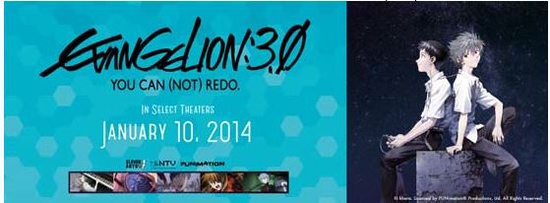 Los Angeles, California (December 2, 2013) – ELEVEN ARTS and FUNimation announced that on January 10, 2014, they will be releasing Evangelion: 3.0 You Can (Not) Redo, the latest installment in the Rebuild of Evangelion movie series in the United States. The film will be also shown in participating Cineplex theaters throughout Canada on the 11th and 16th of January 2014. A list of theaters and dates for the U.S. is listed on ELEVEN ARTS's Evangelion 3.0 site along with the theatrical teaser trailer. The theater listing for Canada will be announced shortly.