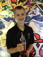 In addition to winning a trip to Italy for him and a guardian, he also received an amazing prize pack including complete sets of Legacy of the Valiant and Primal Origin, a Super Rare YCS Prize Card, Number 106: Giant Hand, a Tablet PC, a personalized Yu-Gi-Oh! World Championship jersey to be awarded at the World Championship, and 12 packs each of Judgment of the Light, Shadow Specters, Legacy of the Valiant, and Primal Origin.