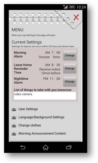 The "Wake Me Up Asuna" app provides audio and speech feedback in Japanese only, but an English language support add-on (purchase required) is now available for English speaking users. The add-on allows the app to display English menus, show English subtitles of Asuna's speech, and utilize the English voice recognition engine making interaction possible in English.