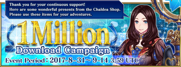 Thanks to everyone's continuous support, Fate/Grand Order (English) has reached over 1 million downloads! To celebrate this occasion, we have prepared a special Facebook campaign!